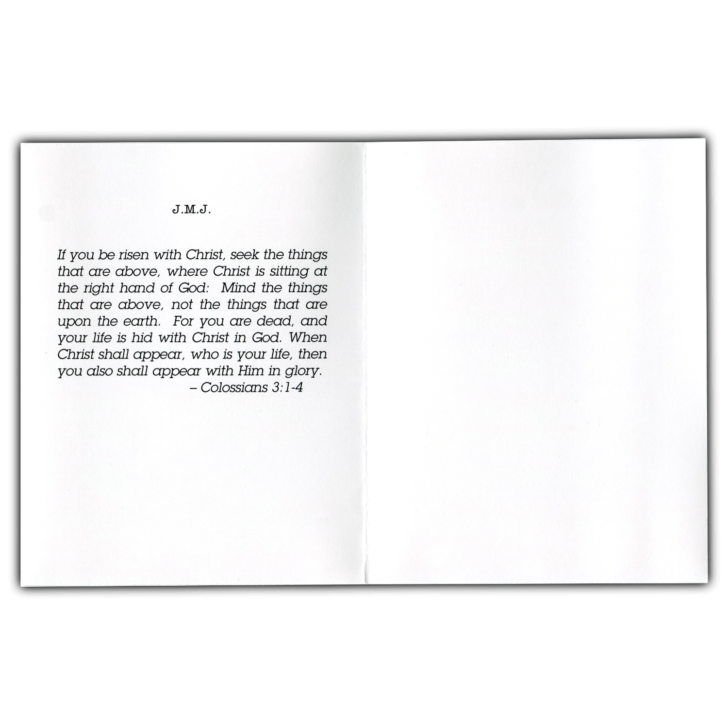 Our Blessed Eastertide Card Set began its maiden voyage Holy Week 2019 offering 10 different Easter vintage images  conveying the JOY on Eastertide — messages tucked inside on the Day the Lord has made — Easter Sunday from excerpts from: 19th century Venerable Abbot Gueranger on Easter Sunday and the fifty days of celebration in the Emmaus cards, the Good Shepherd cards offer the Easter message of St. Patrick while the Easter greeting cards offer a selection of Psalms from the Divine Office; and the Resurrections cards convey the bible passages of Colossians 3:1-4.  It was so well received we present it to you.