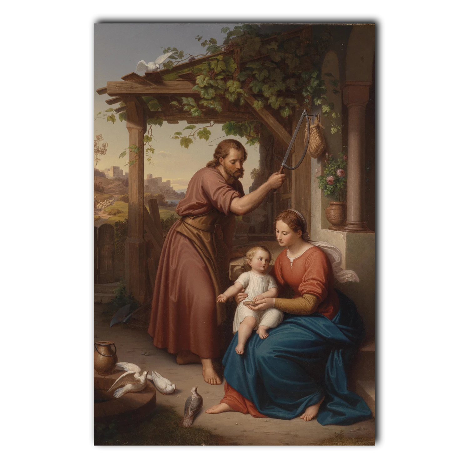 High quality Holy Family print of Mary and Joseph with the Baby Jesus by 19th century, German artist, Julius Frank, available in 4″x6″, 5″x7″, 8″x10″