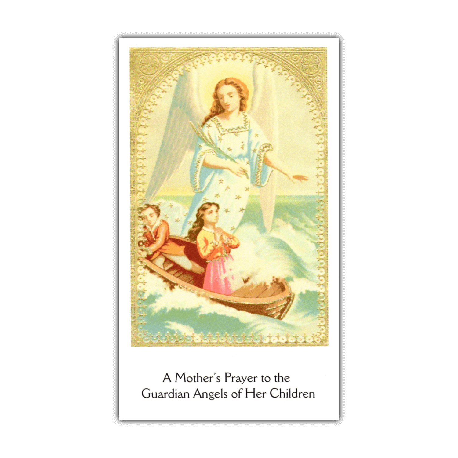 A large guardian angel holy card in which mothers can go straight to their children’s heavenly protectors for help.