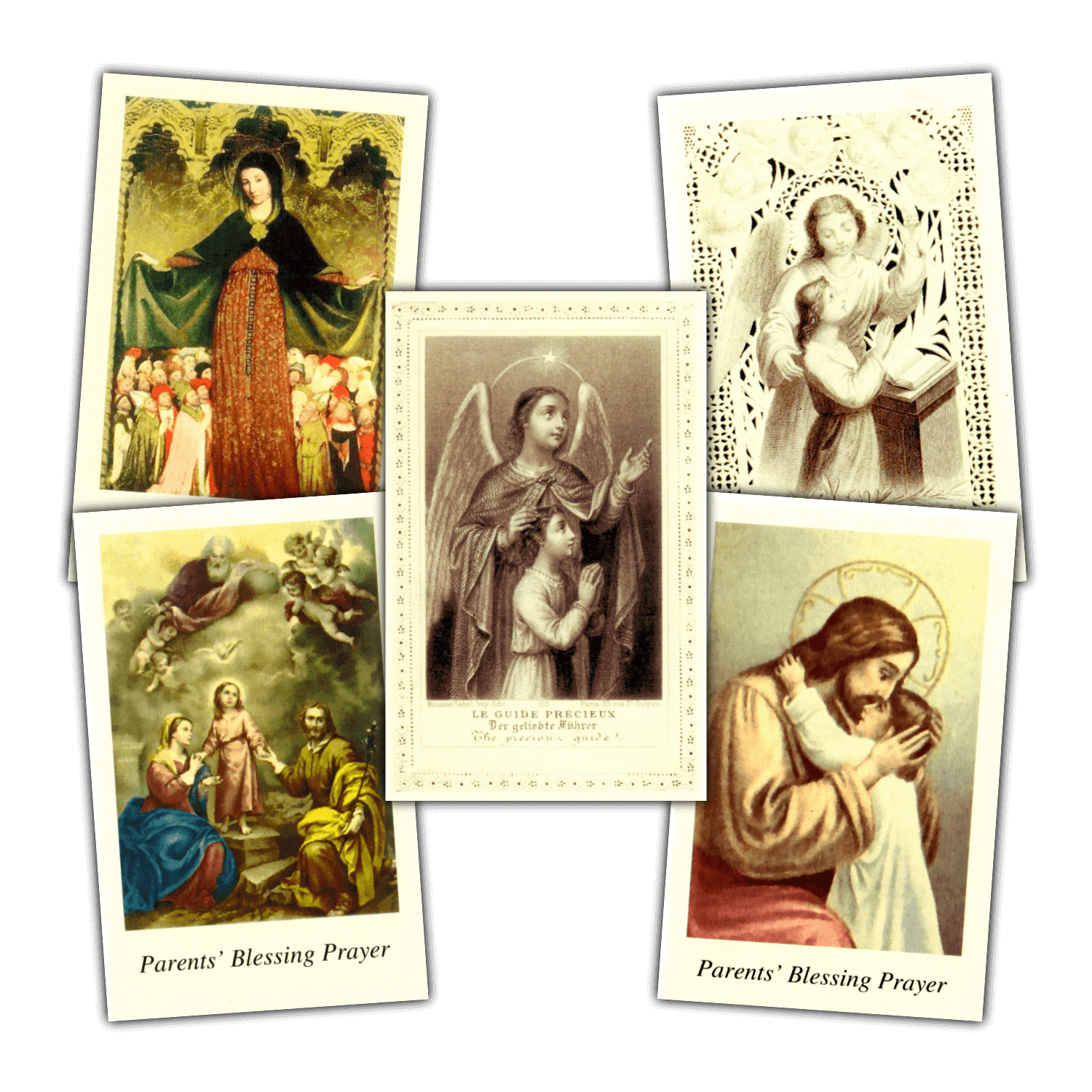 The Parents Blessing Prayer Card contains a blessing prayer, handed down from the 1800’s, Â for parents asking the Holy Trinity, the Blessed Mother, the Angels, and the Saints to watch and protect their children. Â Choose from five vintage images of Jesus, Mary, the Holy Family, and Guardian Angel, for your holy card.