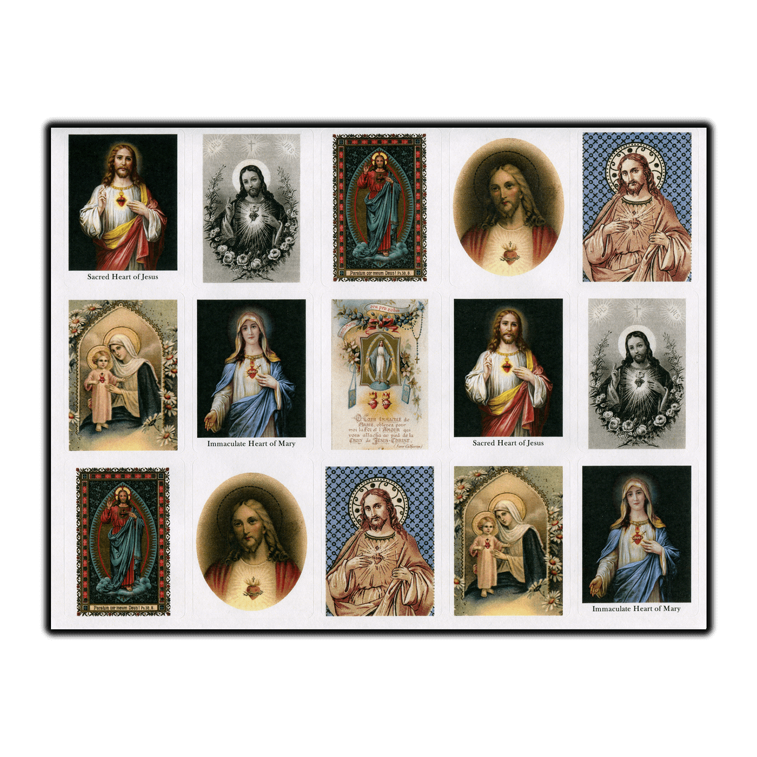 This set of 15 stickers features a number of beautiful vintage images of the Sacred Heart of Jesus and the Immaculate Heart of Mary.