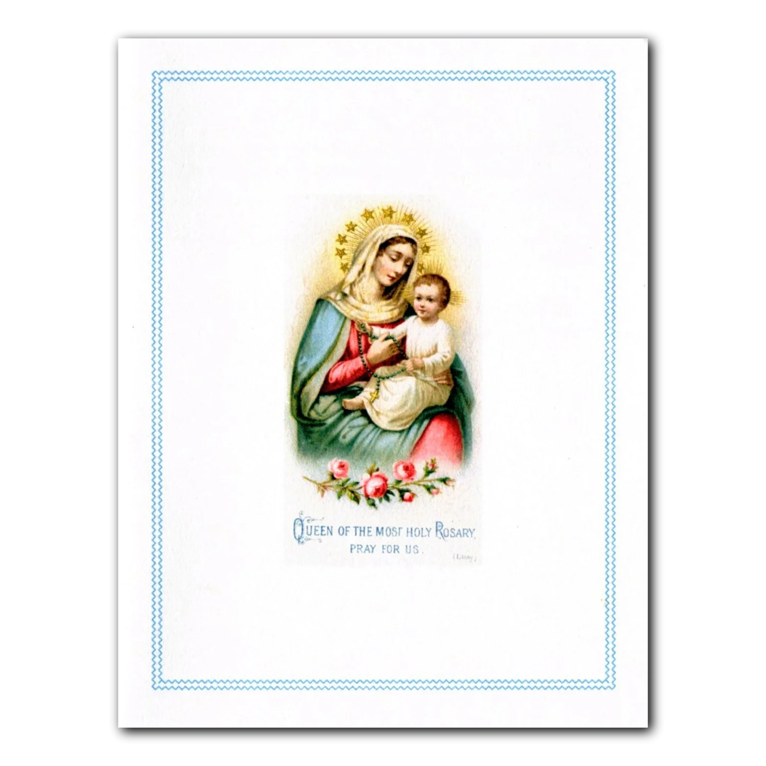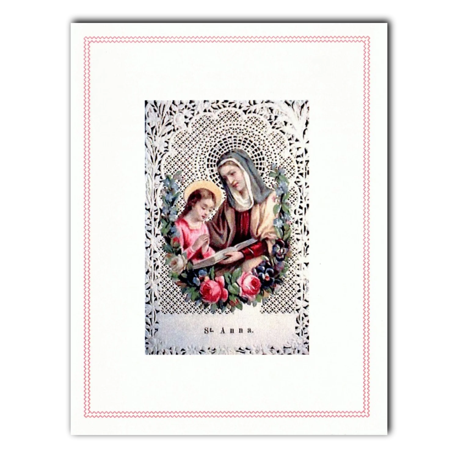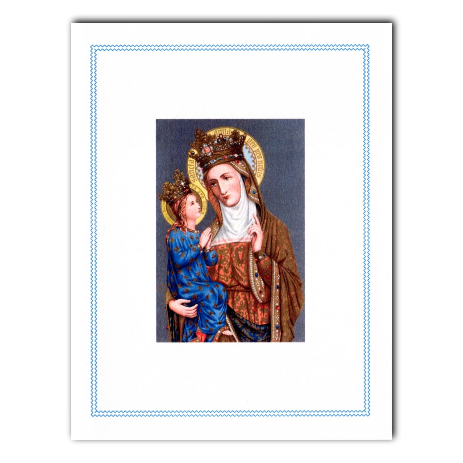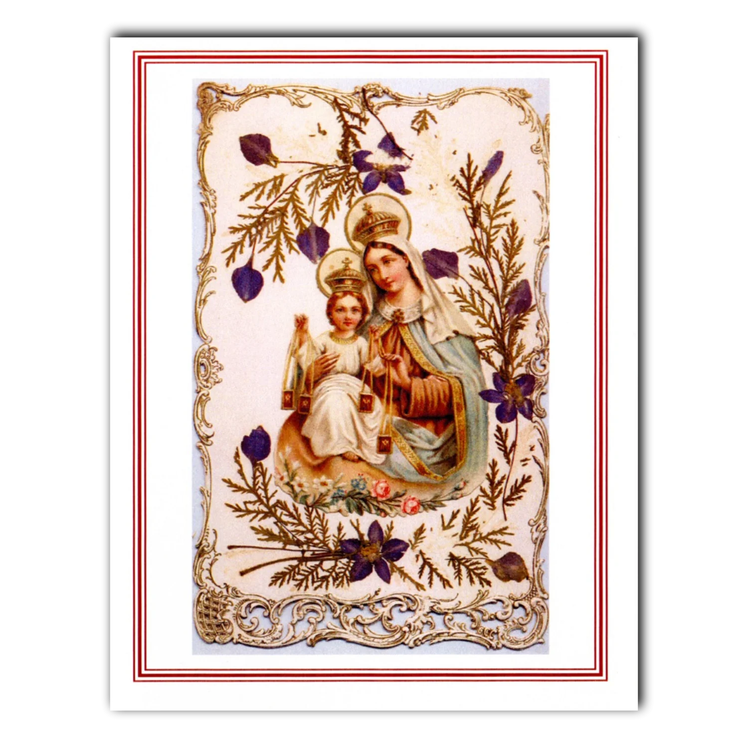 The Titles of Mary and Saint Anne note cards are a great way to express your love for the Blessed Virgin Mary and her mother, St. Anne.  This set of 10 note cards contains two vintage images of St. Anne, as well as several titles of Mary: Our Mother of Perpetual Help, Queen of the Holy Rosary, Our Lady of Mount Carmel, and Mother of Mercy.  Each card has a short inspirational message or prayer, and the rest is left blank for you to use however you would like!